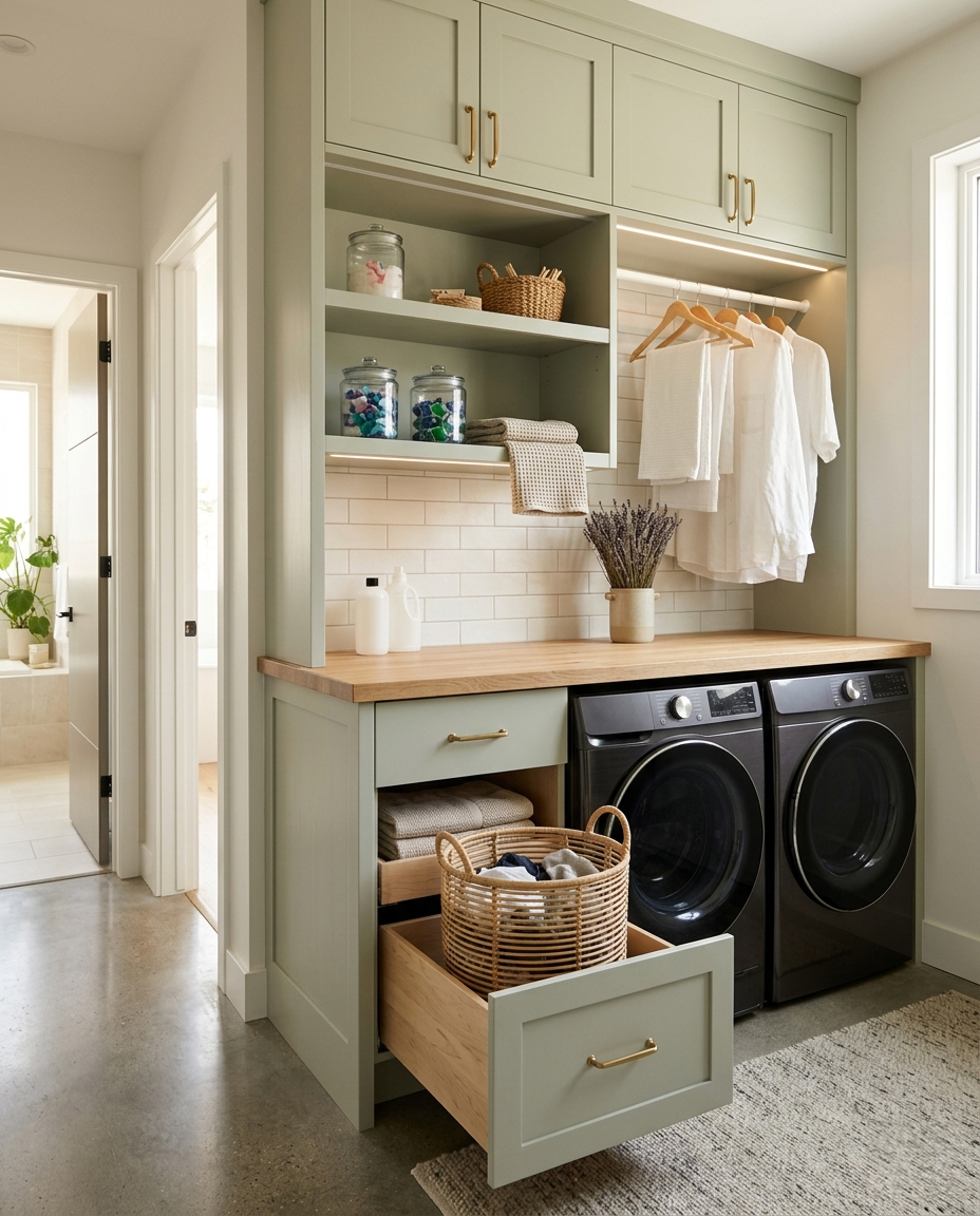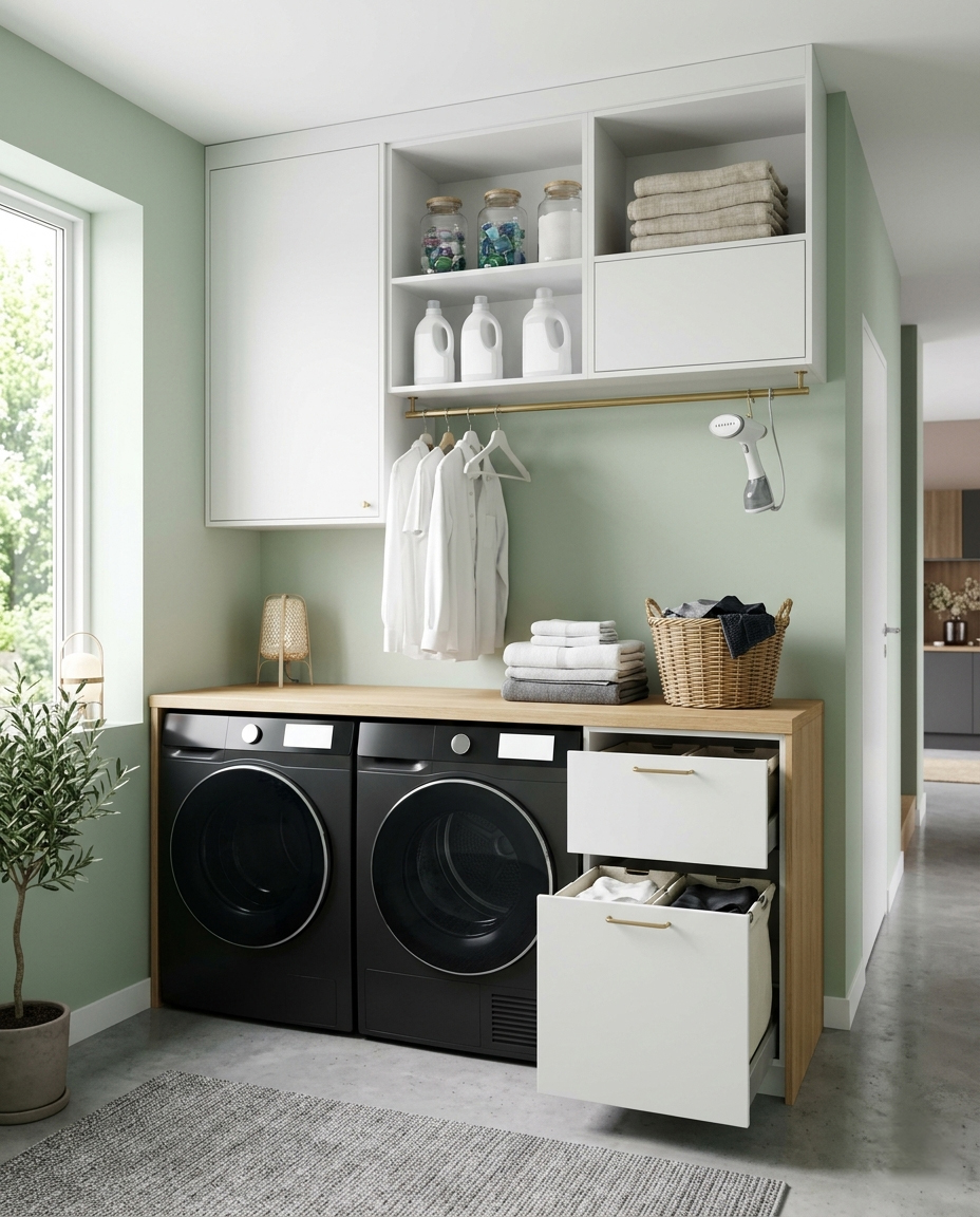 Infine, un consiglio da progettista: pensate al percorso del bucato. Sembra banale, ma non lo è. Dove si accumulano i panni sporchi? Dove si piegano quelli puliti? Dove vengono riposti? Una buona posizione di lavatrice e asciugatrice riduce gli spostamenti e semplifica la routine quotidiana.